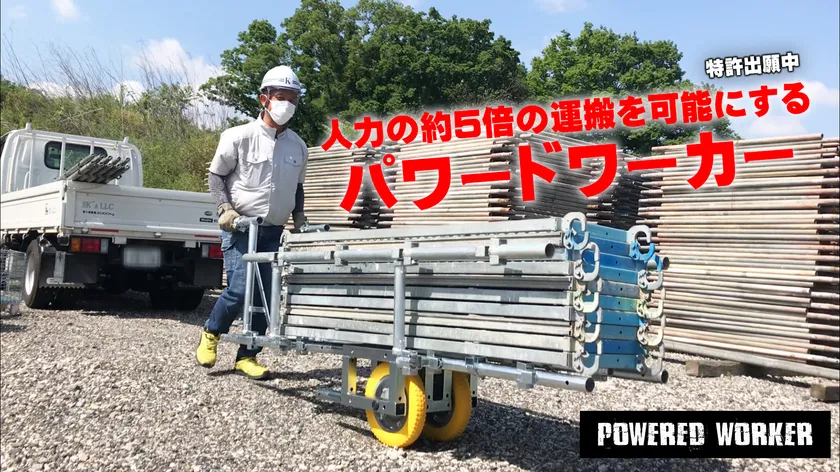 パワードワーカーとは、主に足場作業などの毎日繰り返されている細部に至る作業でもある人力運搬を補うことを目的に開発された組立式運搬台車です。