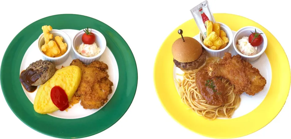 お子さまが大好きなメニューが盛りだくさんのプレートセット。オムライスかミートスパゲッティか、お子さまのお好みをチョイスいただけます。ドリンクバー付き。
