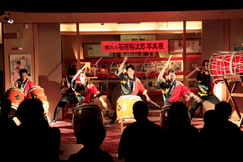 和太鼓ショー&餅つき大会は、昭和62年11月15日より当時『武田信玄公』の大河ドラマ放映で山梨に大勢のお客様がお見えになるので、スタッフより、なにかお客様に楽しんでいただけるおもてなしは出来ないだろうかと声があがり、「信玄出陣太鼓」をスタッフ自身が練習してスタートしました。現在も受け継がれて30年以上、365日、皆様にお届けしております。