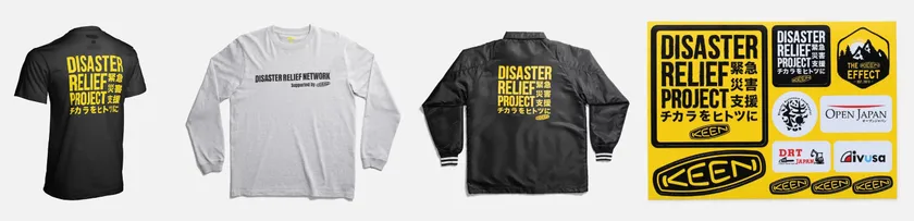 KEENは、日本国内で発生した災害の現場にいち早く駆け付け、被災された方の心に寄り添い、臨機応変な災害支援をおこなうボランティアネットワークOPEN JAPANをはじめとするボランティア団体の活動を2011年よりサポートしています。KEENは災害支援を少しでも応援するために、チャリティグッズの販売を続けております。収益金は、一般社団法人OPEN JAPAN、DRT JAPAN、災害NGO 結をはじめとする災害現場で活躍するボランティア団体へ寄付されます。