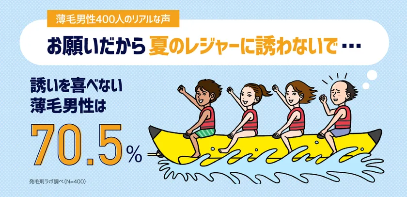 薄毛男性400人のリアルな声 「夏のレジャー、誘いを喜べない薄毛男性は70.5%」 に関する調査を実施 ~発毛剤ラボがデータ公開~