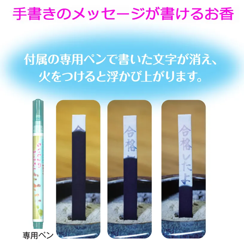 ◎付属の専用ペンでお香に文字が書けます。