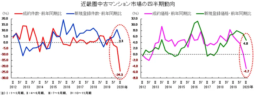 2020年4~6月期の中古マンション成約件数は前年比マイナス24.1%の大幅減