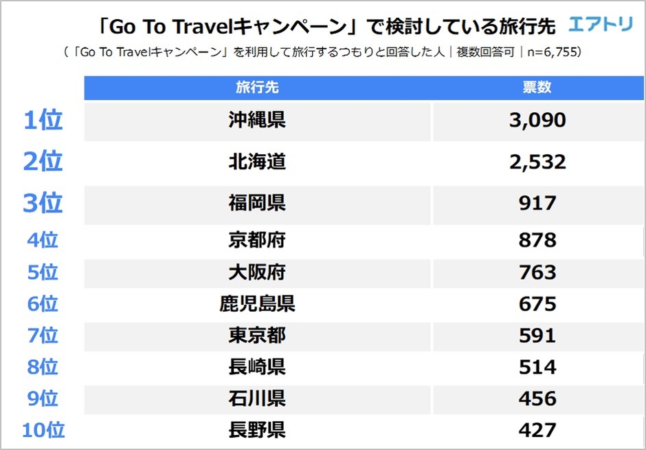 ―感染者が未だに多い首都圏では「東京都」が7位、「千葉県」や「神奈川県」は圏外となり人気が低迷しました。
