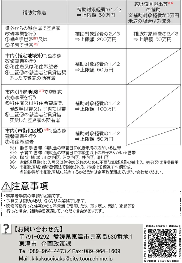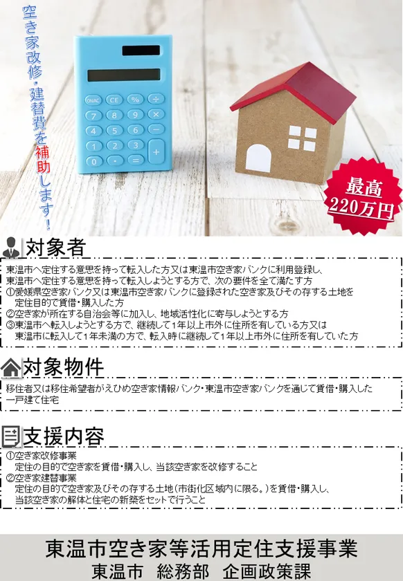 制度名:東温市空き家等活用定住支援事業