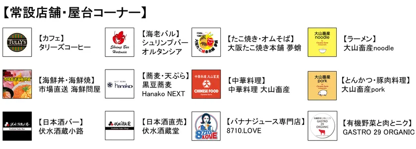 「食べる、楽しむ、出会う、繋がる」をコンセプトに食事とエンターテイメントを融合した新感覚のフードホールです。大阪初出店となる京都・伏見の「伏水酒蔵小路(ふしみさかぐらこうじ)」や、難波・大国町から本店を移転させた手打ちそばの「黒豆蕎麦 hanako NEXT」をはじめ、食にこだわる10店舗を常設、現在期間限定の4店舗を合わせて全14店舗が出店しています。