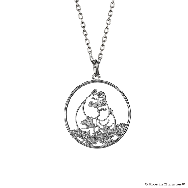 ムーミンとスノークのおじょうさんのシルバーネックレス。ムーミンとスノークのおじょうさんが寄り添う姿にほっこりするシルバーネックレス。シルバーカラーで日常生活でも身に着けやすい仕様です。
