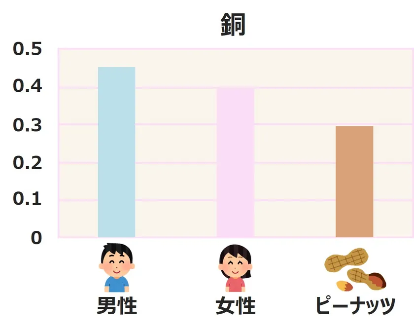 銅の1日必要量とピーナッツ(50g)に含まれる銅量(※縦軸はmgを示しています)