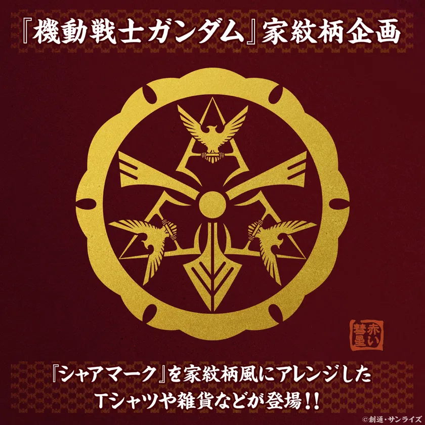 本商品は、アニメ『機動戦士ガンダム』に登場する人気キャラクター「シャア・アズナブル」のパーソナルマーク「シャアマーク」を家紋柄にアレンジした企画です。「家紋柄企画」は、ご好評いただきました第一弾の「ジオン軍マーク」に続き、第二弾となります。