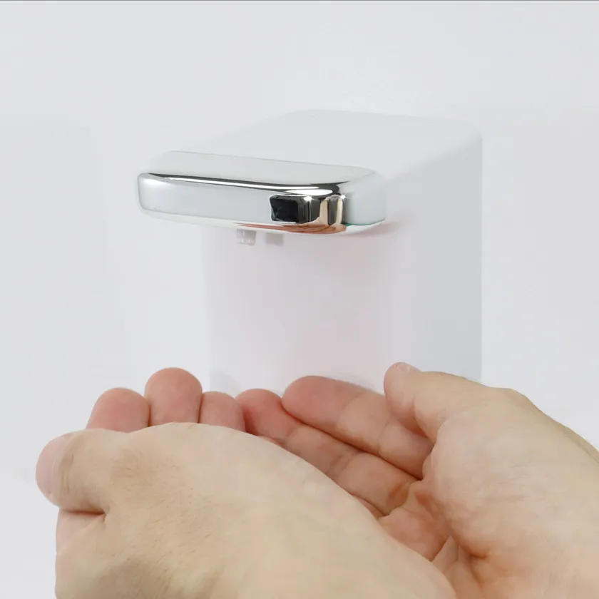 「新しい生活様式」を日常生活で実践するにあたって、手指を清潔にしておくことは取り入れやすい基本の感染症対策ですが、不特定多数の人々が利用する飲食店や商業施設などにおいては、店頭に設置した除菌用スプレーボトルを経由した交差感染のリスクも潜んでおり、容器に触れることなく薬液を手に取れるディスペンサーの使用がより効果的です。本製品はアルコール液用の『ミストタイプ』、アルコールジェル用の『ジェルタイプ』の2種類からお好みによって選択が可能。どちらも5cm離れた手指を感知するセンサー内蔵型で、ボトルに触れることなく衛生的にご利用いただけます。