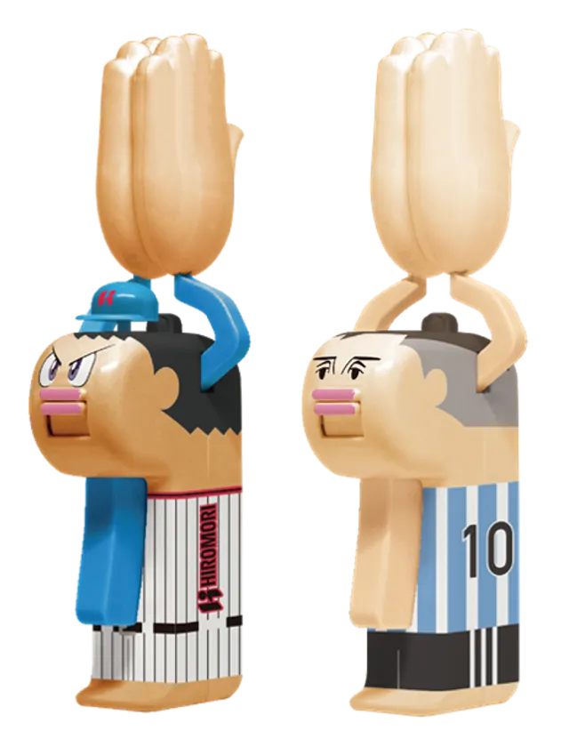「パチパチクラッピーへんげ」は、片手でパチパチ拍手ができる「パチパチクラッピー」の機能はそのままに、本体カラーやデザインを自由にアレンジできるように開発しています。チームのオリジナルデザインや、キャラクターの活用など、プロモーショナルな展開が可能になり、ファングッズとしてエンゲージメントの構築にも貢献します。これからのスポーツ・ライブ観戦や自宅でのリモート観戦に。仲間と一緒でも、一人でも。活用シーンは様々です。
