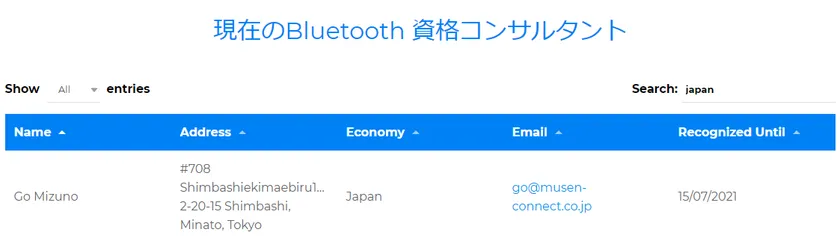 Bluetooth(R) Qualification Consultant資格保有者リスト