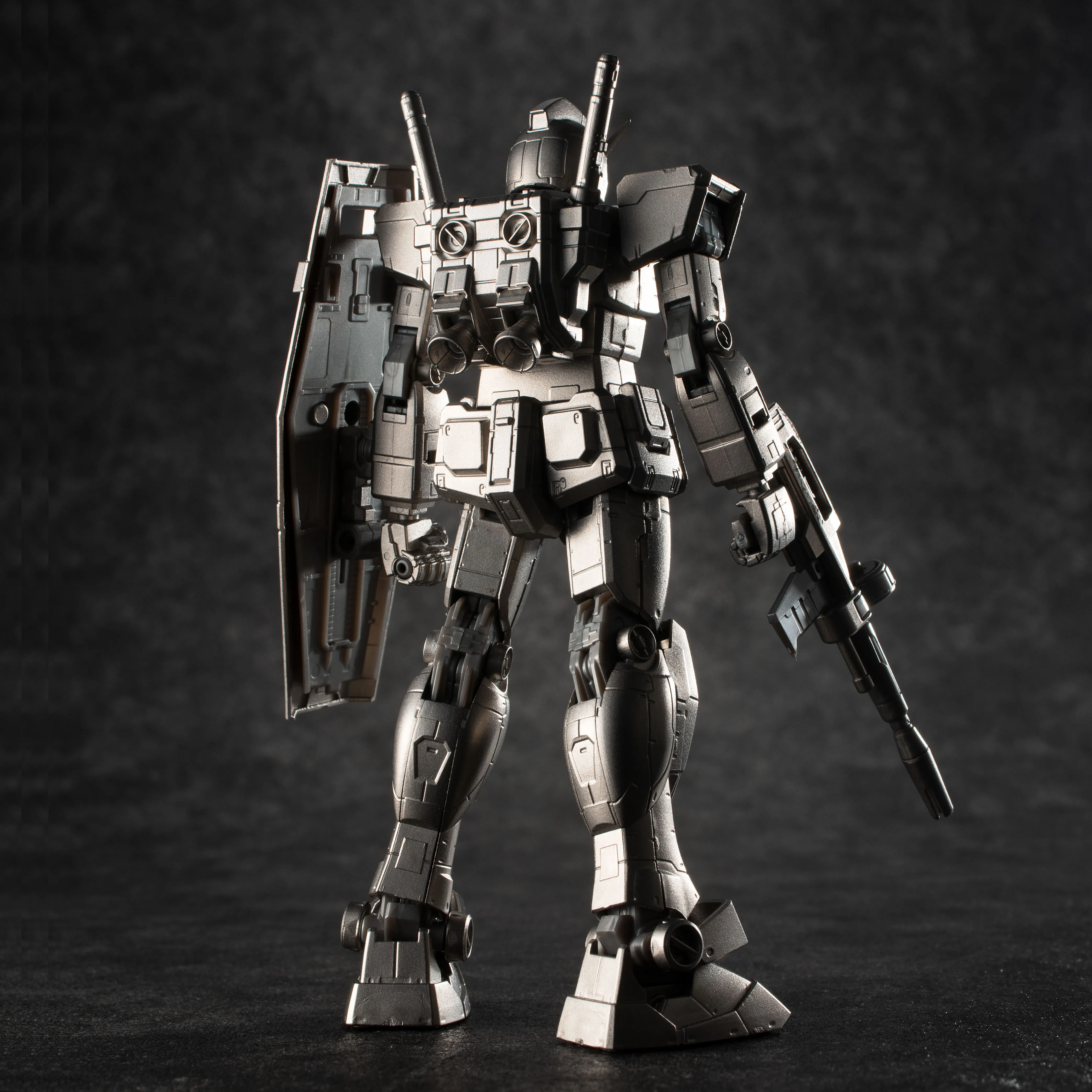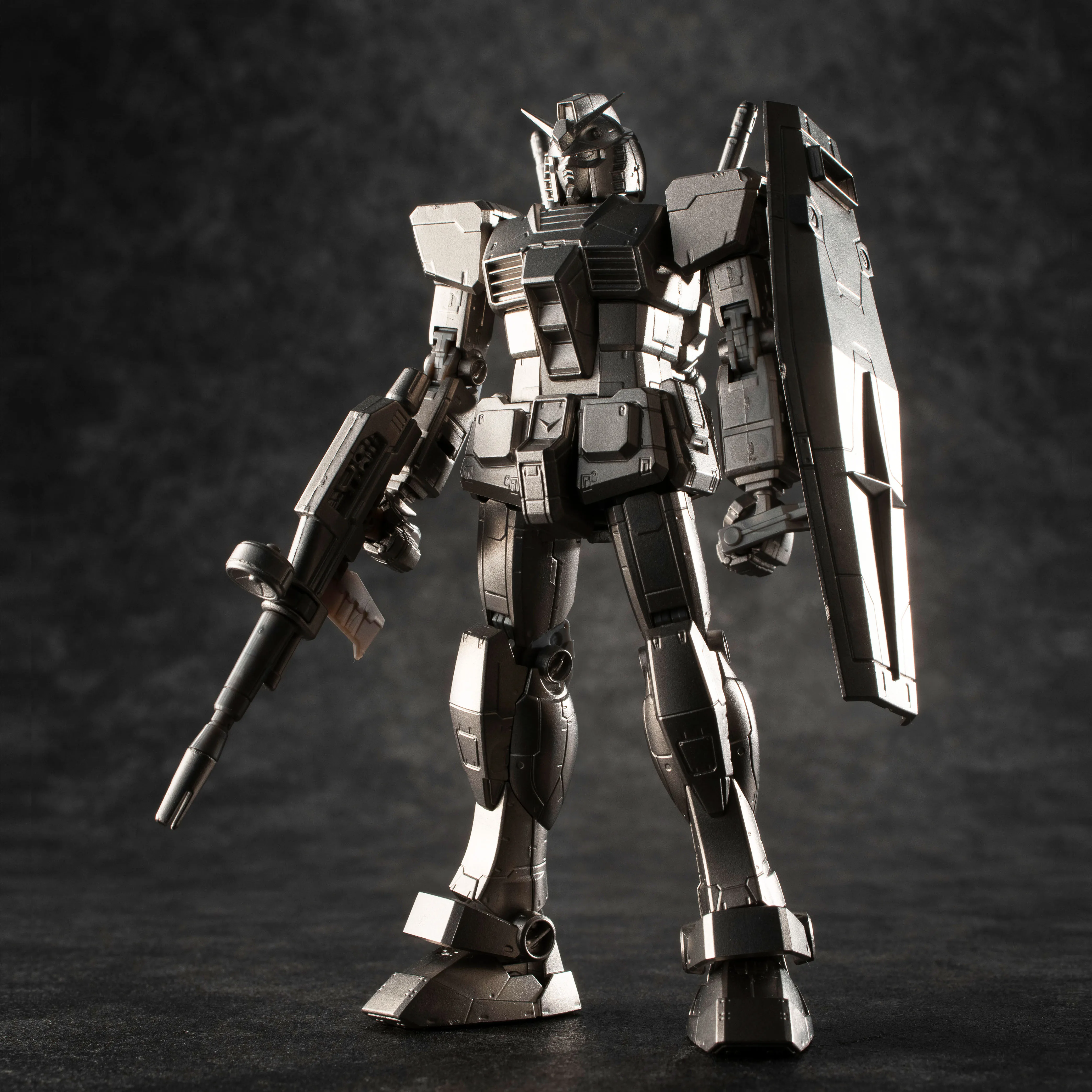 今回のガンダリウム合金モデルは、1/1 RX-78-2 ガンダム立像とRG(リアルグレード)のモールド表現を意識したデザインとなっています。金属パーツが醸し出す陰影と、見る角度によって更にモールドを際立たせるように工夫しています。