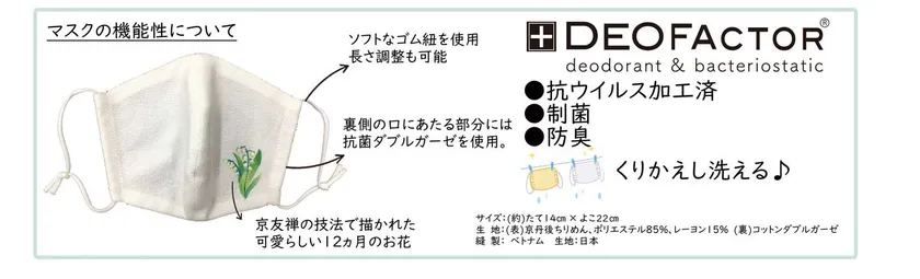 5月の花「すずらん」が描かれたマスク。花言葉は「幸福の再来」