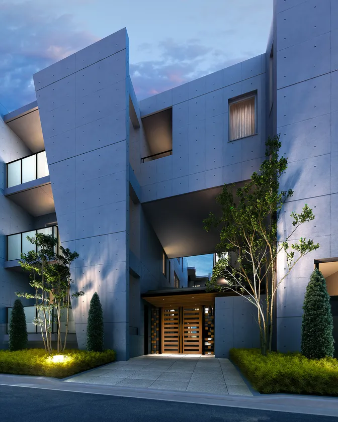 住まいの顔となるエントランスは設計者のこだわりがつまった外観で、天井高約6mの2層吹抜空間を設け、アプローチの先に広がる中庭へ誘導します。また、25戸の住戸は全て異なるタイプの間取りとなっており、自分のライフスタイルにフィットするものを選択することができます。