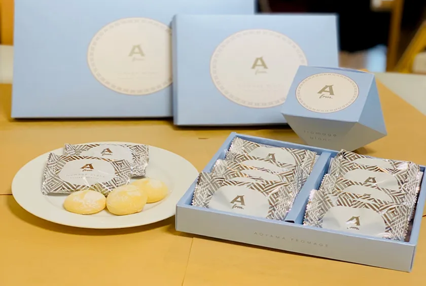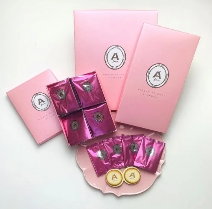 クッキーには青山フロマージュのロゴをプリントし、パールピンクのオシャレなパッケージに入っています。