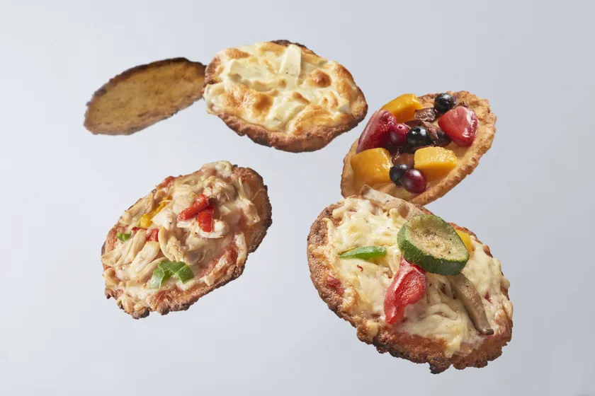 カリフラワーと米粉でつくられた生地は驚くほどの軽さ。「生地でお腹いっぱいになっちゃった」なんてことはありません。小麦粉にはないさっぱりとした甘みと食感は、トッピングの魅力をぐっと引き立てます。チーズ、野菜、果物、お肉……食材たちはカリフラピザの上で、実にイキイキと主張します。そのおいしさに、お腹は満たされ、ココロは軽く。食べる楽しさを豊かに広げます。