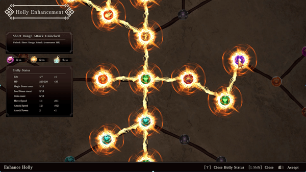 ダンジョンで入手した強化アイテムを使って、ホリーや拠点を強化させよう!