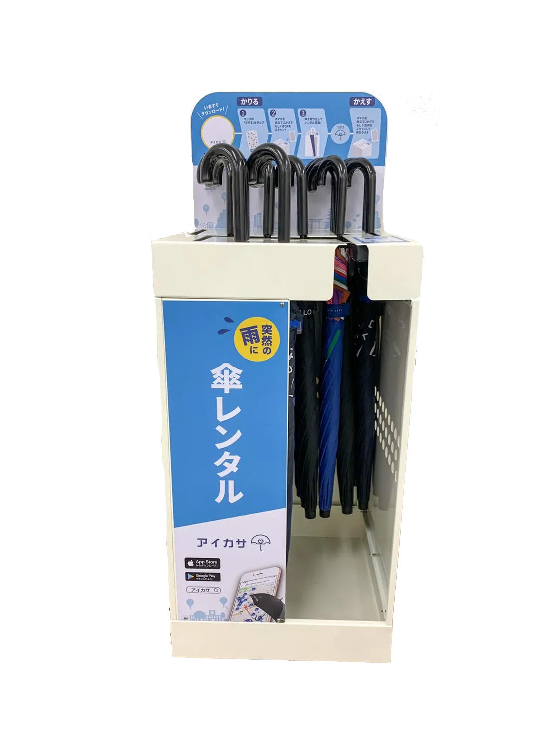 「アイカサ」とは、株式会社Nature Innovation Groupが提供する傘のシェアリングサービスで、1日70円で傘をレンタルし、アイカサのレンタルスポットであれば、どこででも返却ができるサービスです。