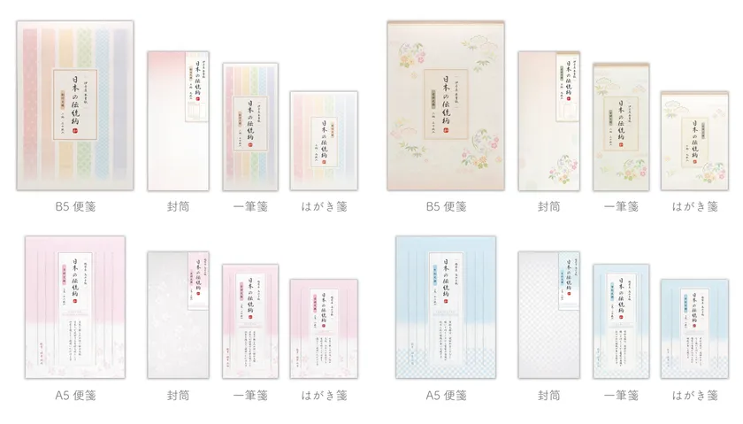 アイテムは、便箋・封筒・一筆箋・はがき箋で、各4柄展開。
