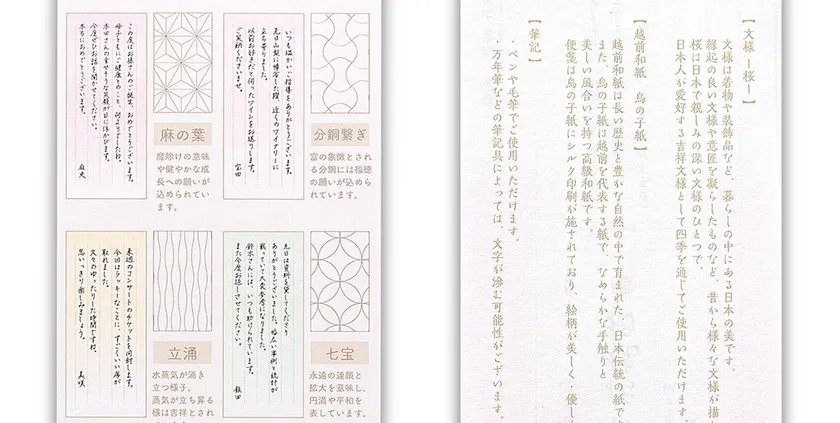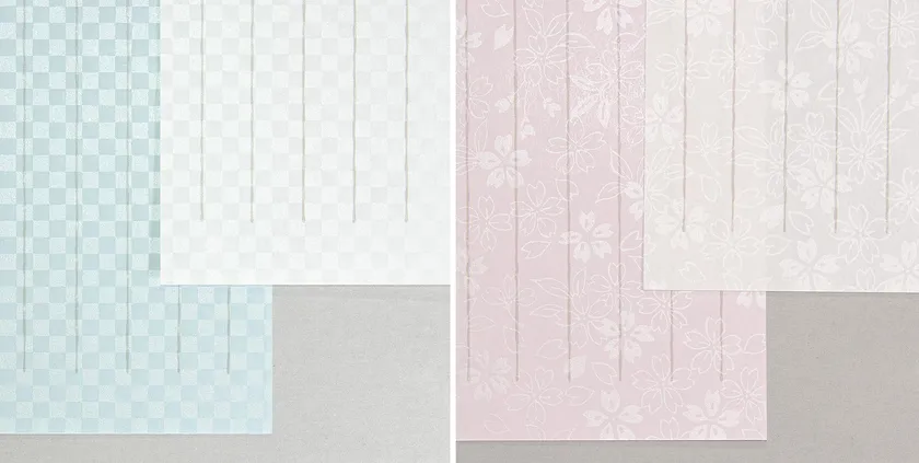アイテム写真下段の商品は、シルク印刷がきらりと優しく輝く和紙を使用しています。