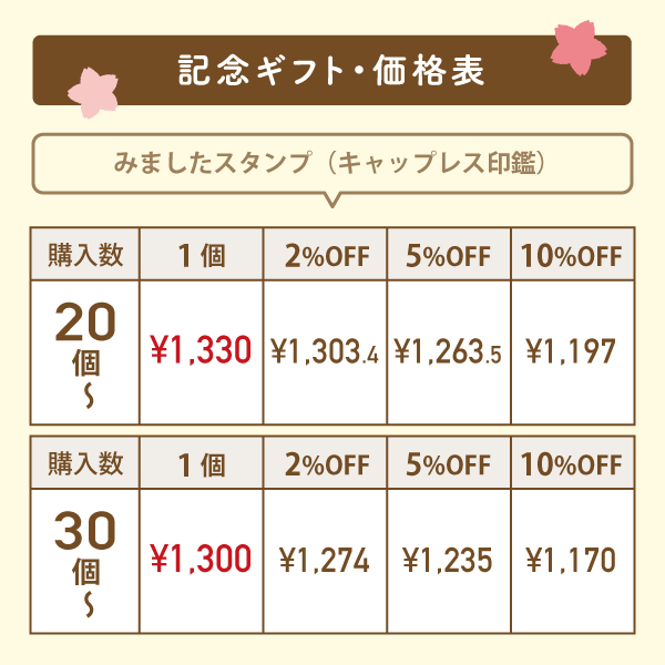 【価格】早めに注文すると割引率UP!20名以上から名入れ記念品が作れる