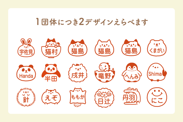 ショップで人気のシンプルながら手描き風のかわいいイラストを印鑑サイズに合わせて展開。ユーモアあふれるかわいいイラストが入った全75デザインは、すべて当店のイラストレーターが作成しました。