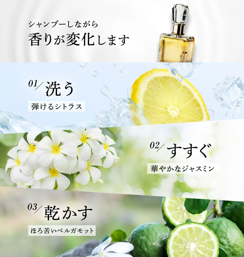 ■洗う・すすぐ・乾かす 3段階で香りが変わるフレグランスクリームシャンプー