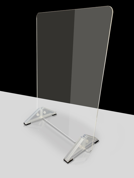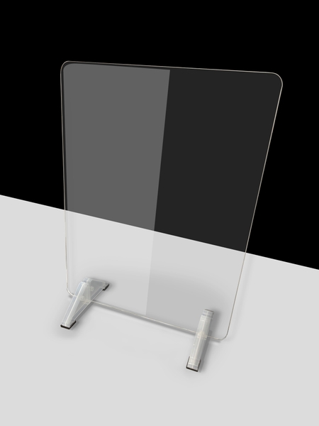 「アクリル板は入手できるけど、それを立てるスタンドがない」 「アクリル板で製造すると価格が高くなるため、仕方なく透明シートで代用している」 などといったお客様からの声を踏まえて開発しました。