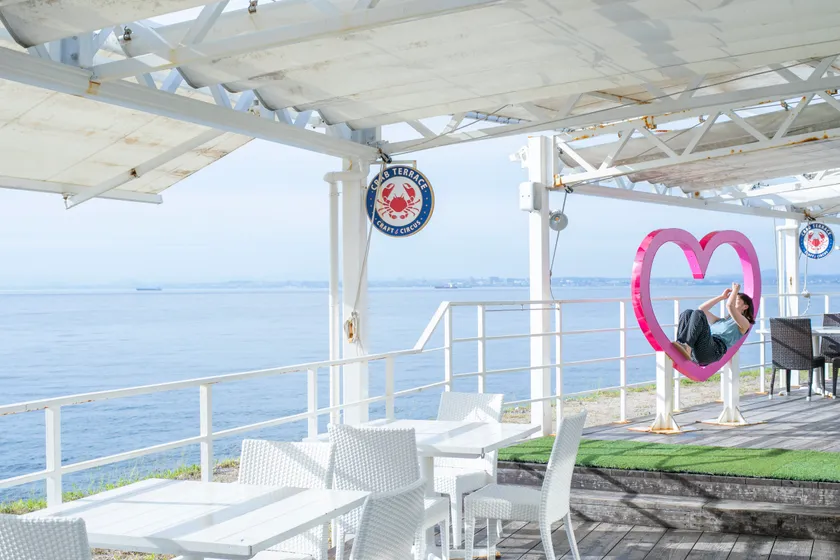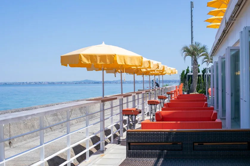 100mを超えるウッドデッキを持つシーサイドマーケット&レストラン
