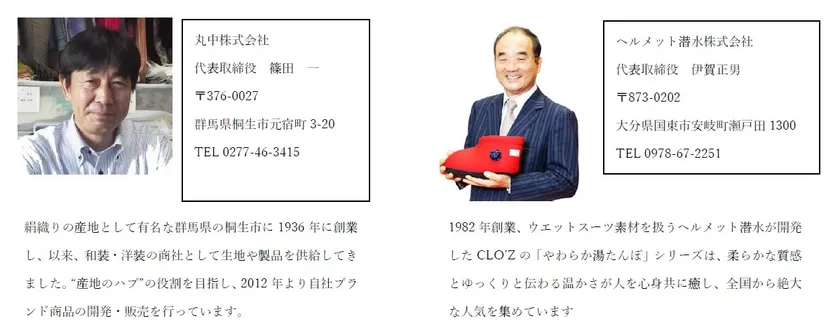 この大分県のヘルメット潜水株式会社は、ウェットスーツ素材を使った湯たんぽブランド「CLO'Z(クロッツ)」を展開しこれまで約50万個の販売実績を上げており、今回の商品にも最適だと考えました。