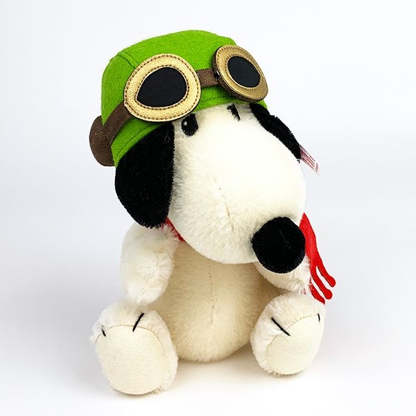 私たちの取り扱うスヌーピーのぬいぐるみは300種類に及びます。その中でも、こだわりと希少性は最上級。職人が1つ1つ手作りをした渾身のコレクションドールです。モチーフは、数あるスヌーピーのアートの中でも人気の高いフライング・エース。もちろん、ぬいぐるみのモチーフとして人気が高く、そして、シュタイフのスヌーピーとしては初の登場です。宿敵のレッドバロンと戦うべく、パイロット”フライング・エース”に扮したスヌーピーがおなじみの赤い屋根の犬小屋にまたがり、空想の中で大空を駆け巡ります。帽子やゴーグルは着脱可能(注1)なので、スヌーピーとしても飾れてしまいます。