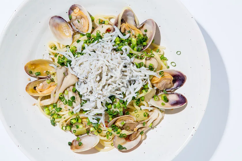 釜揚げシラスと厚岸産アサリのペペロンチーノ