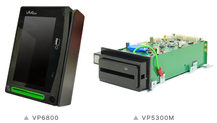 新たにPCI P2PEソリューションに認定された決済端末は、ID TECH社製「VP6800」と「VP5300M」の2機種です。いずれもクレジットカード決済機能を搭載しており、「VP6800」は防塵防水性能IP65を備えたマルチメディア端末、「VP5300M」はオートローダー式IC対応端末という特徴を有します。