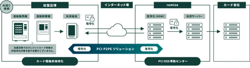 ※2 PCI P2PEソリューションとは、カード情報を読み取った決済端末のカードリーダーデバイスから決済ネットワークに至るまで、エンドトゥエンドでカード情報を暗号化する考え方に基づいたソリューションです。