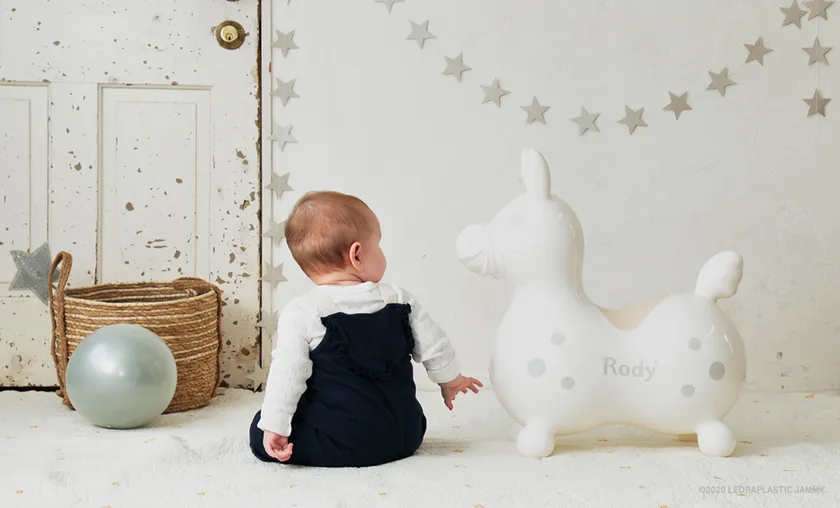 Rodyはベビーからキッズまで長く遊べる乗用バランスボールトイ。