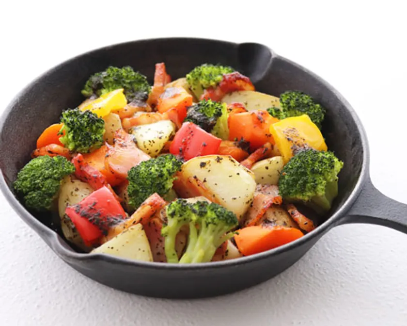 カット済みの野菜やベーコンをバジルソースで和え、オーブンまたはトースターで焼くだけの簡単調理です。バジルの風味とベーコンの塩味でお酒にもよく合う味わいです。
