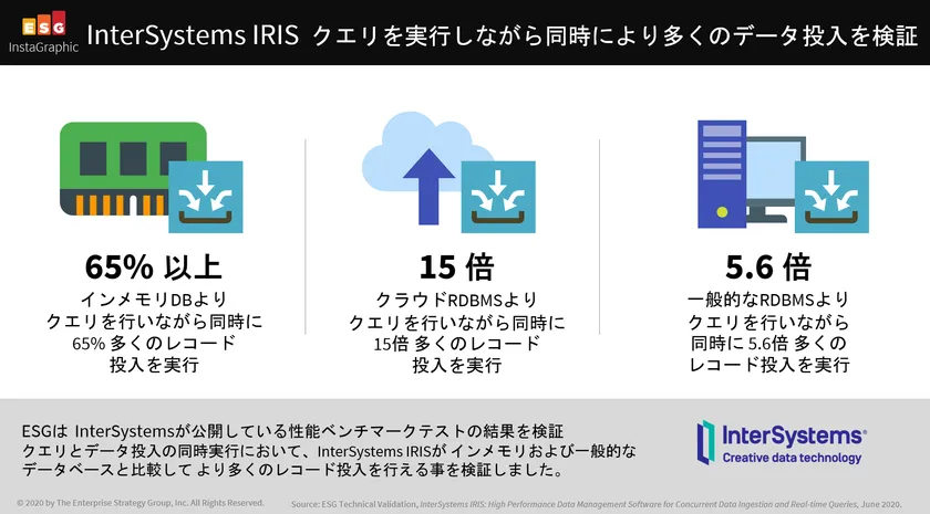 InterSystems IRIS(R) Data Platformは、ESG社が検証した 性能テストにおいて、他のデータベースを凌駕