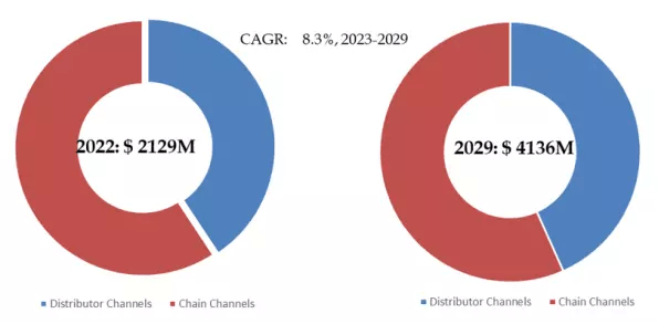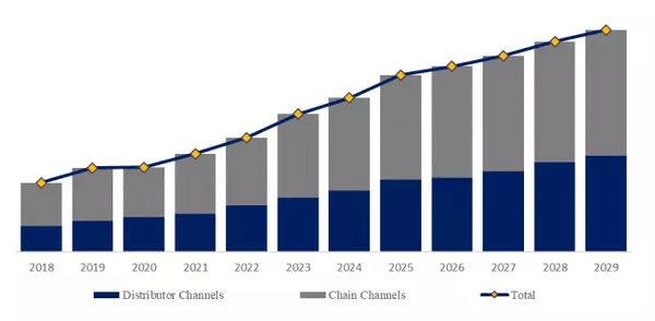 製品の用途別では、チェーン・チャンネルが最大の用途で、59.3%のシェアを占めている、