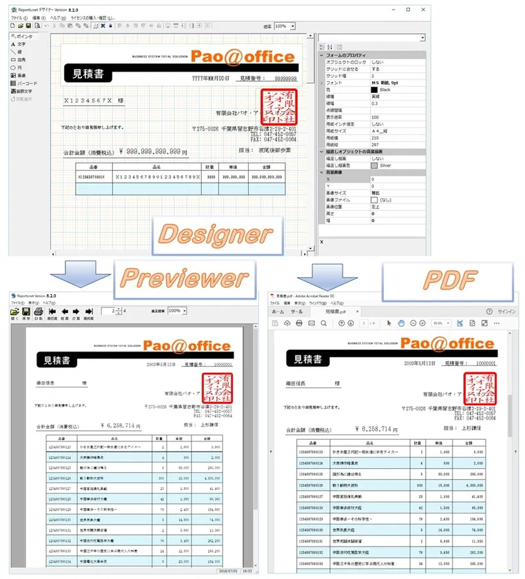 <「Reports.net ver 8.2」PDF出力結果 イメージ>
