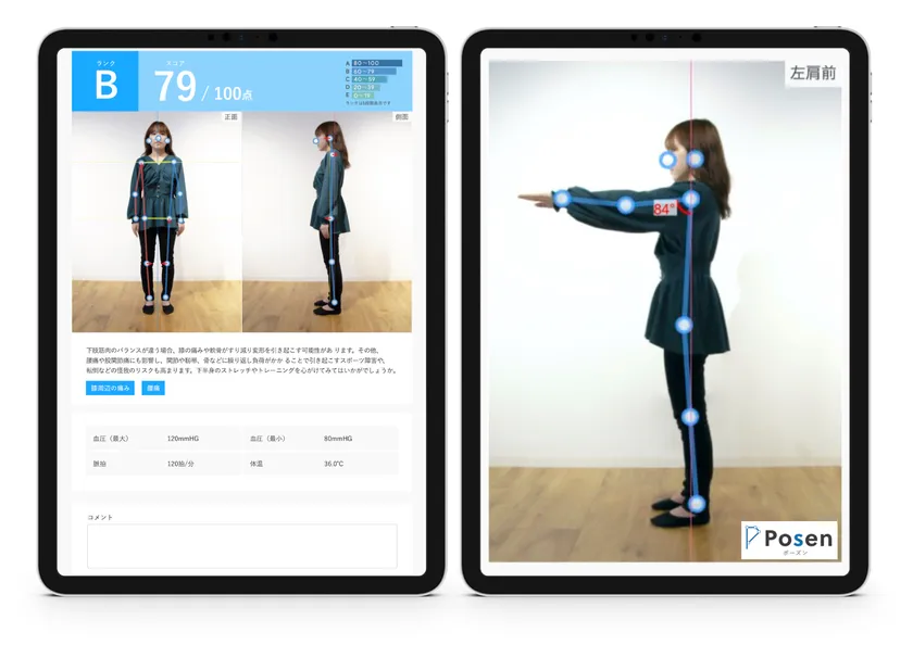 身体の歪み、関節の可動域を国内最速の「1分」で見える化! オンライン診療・カウンセリングに対応のAI診断「Posen」を開発