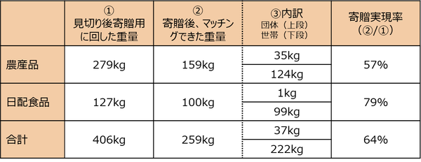食品寄贈プラットフォームを活用した実証実験終了 寄贈実現率64%で食品ロス削減とともに社会福祉の増進に貢献