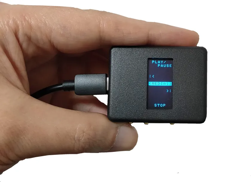 操作は背面のジョイスティックで上下左右の4方向のスライドで実行されます。操作できる内容は本体ディスプレイに表示されていて、側面のボタンでページを切り替えます。