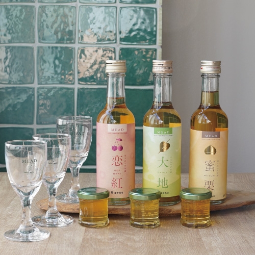 内容:ミードも蜂蜜も自宅でじっくり飲み比べが楽しめる、オシャレなグラス付きのセット。