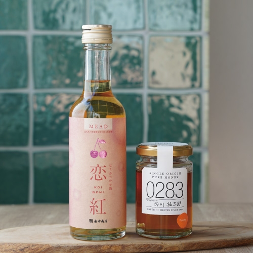 内容:濃厚な甘さが特徴のさくらんぼの蜂蜜と、甘くて少しすっぱい恋の味わいをイメージして造ったやや甘口のミードのセット。