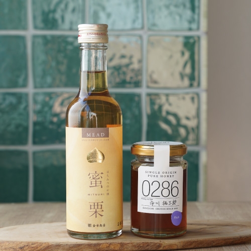 内容:コクのある味わいと香ばしさが特徴のくりの蜂蜜と、くり蜂蜜らしい香りや、やや酸味とビターさが感じられる大人の味わいのセミドライテイストミードのセット。
