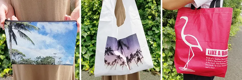 数々の人気ブランドでもエコバッグを売り出すなど、オシャレで“映える”デザインも大人気。フルカラー印刷に対応した当社のオリジナルタイベックバッグ製作で、エコバッグを作ってみませんか?