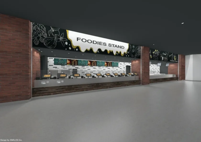 1階、2階、3階の売店「FOODIES STAND」には、キャッシュレス決済が可能な当社提供の「Okageセルフレジ」が合計24台導入され、うち5台は現金支払いも可能となります。また、お客様がメニューなどを閲覧できるデジタルサイネージ「Okage Cast」と、注文後、お客様が引換番号のステータスを確認できる「呼び出しモニター」が採用されました。キャッシュレス対応セルフレジを最大10台、並列設置することにより、コンサートの開演時刻までの限られた時間の混雑緩和を実現いたします。