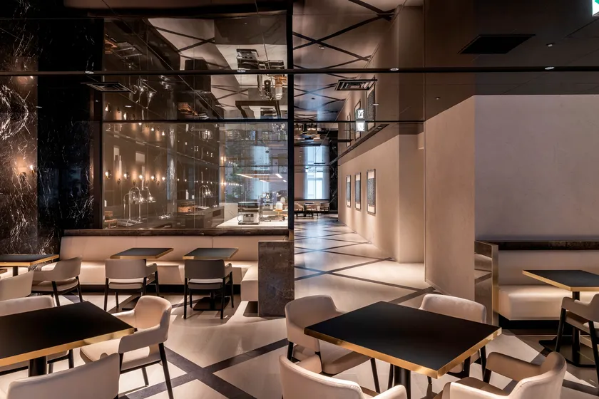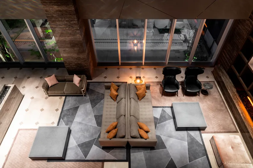 ロビーラウンジには数種類のイタリアカッシーナ社製ソファ・テーブルを配置。