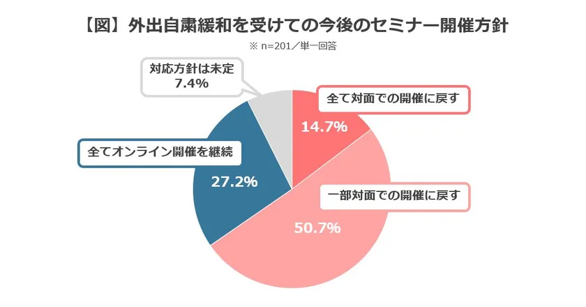 外出自粛緩和の動きを受け、6割以上が セミナーをオンラインから対面開催に戻す意向